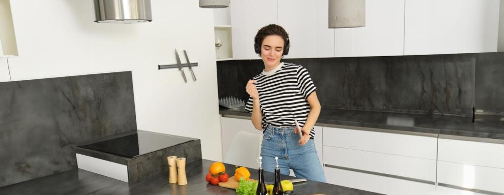 Durch das Schließen der Lücke zur Decke entsteht zusätzlicher Stauraum für selten genutzte Dinge und gleichzeitig weniger Staubflächen. Lagern Sie Saisonware oben, Alltagsgeschirr auf Augenhöhe. Welche Aufteilung funktioniert bei Ihnen am besten?